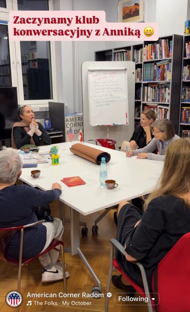 In October, I also began hosting weekly English conversation clubs at American Corner Radom. Great fun- thank you, Urszula Malmon!