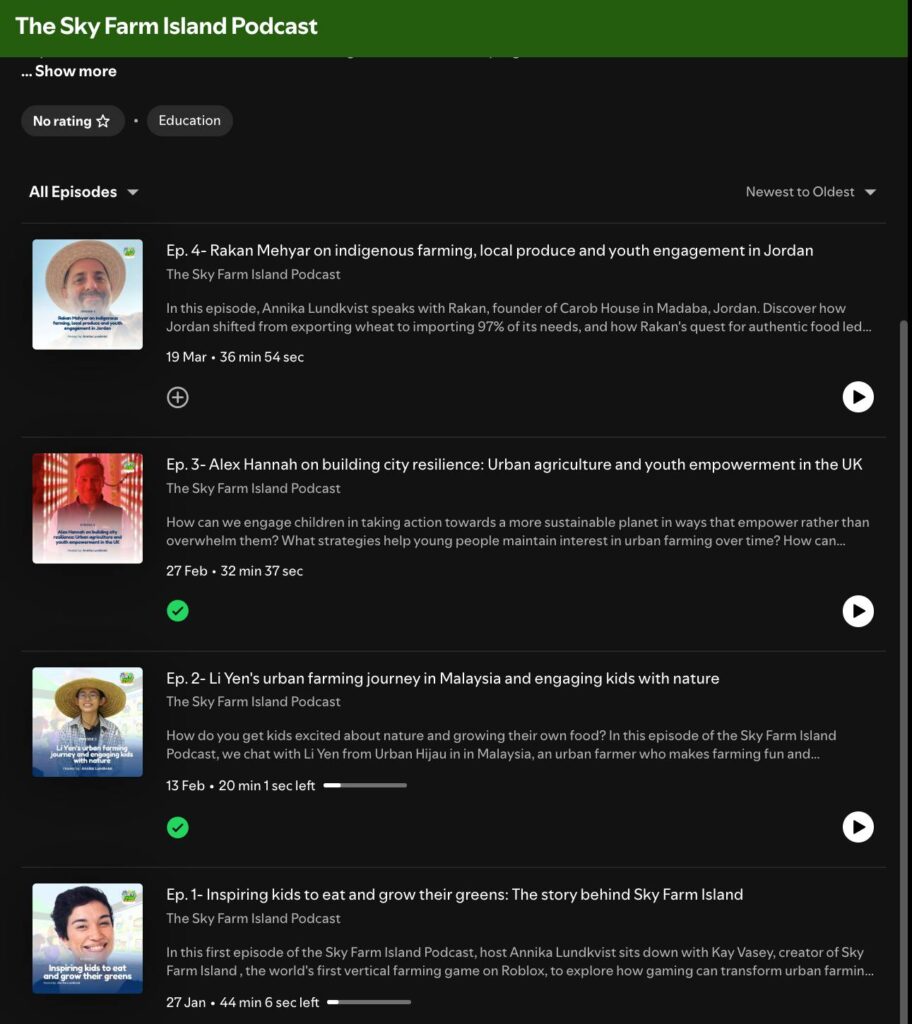 The 1st season of the Sky Farm Island podcast was launched in February as well, for which I really enjoyed serving as host. Thank you Andrea Cayuela and Kay Vasey for the opportunity!