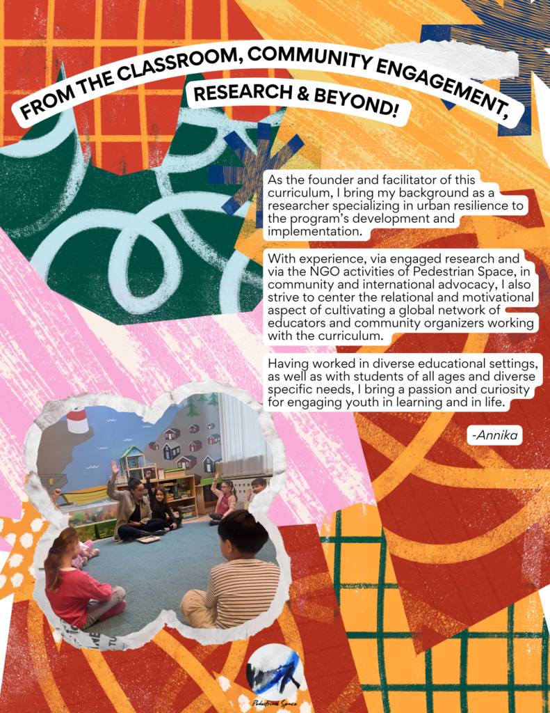This page is meant as an inspirational and informational overview of the program. If you are an educator, school or community program leader or facilitator, or a municipal official interested in more details and collaborating, please contact info@pedestrianspace.org