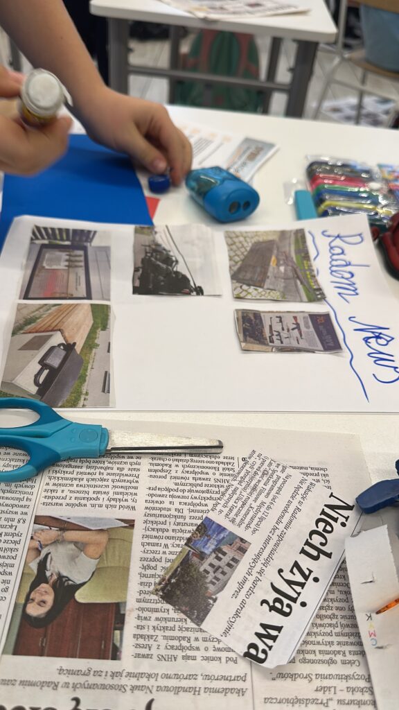 As part of an ongoing ‘My City’ learning module that I am developing and using this month at my job as English language teacher (with focus on speaking) at a Polish primary bilingual school, I did ‘Radom News’ collages in classes today.